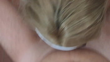 Blonde MILF in weißem Throatpie mit Sonnenbrille, POV 2 Min