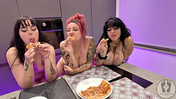 4K Mollige Mädchen essen Pizza-Fetisch im Oben-ohne-String 9 Min
